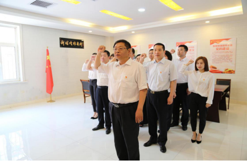 (黨委書記、董事長王喜東同志帶領全體黨員重溫入黨誓詞)